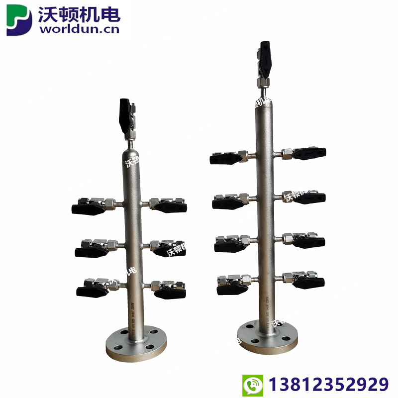 | KFQ-I型气源分配器为螺纹连接,KFQ-Ⅱ型气源分配器为法兰连接,这两种型号的本体由不锈钢或碳钢管材制成,其下端设有排污阀,可定期将空气中的冷凝水从分配器中排出,以免水份进入气动仪表内影响运行。 |